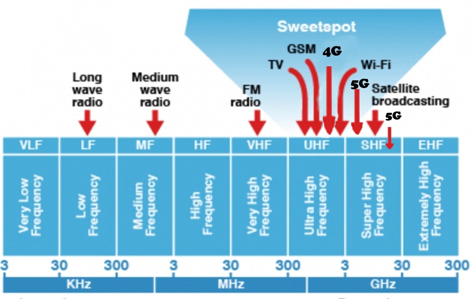 La 4G utilise principalement les bandes de fréquences basses et moyennes (700 MHz, 800 MHz, 1800 MHz, 2600 MHz) pour une bonne couverture et pénétration des bâtiments. La 5G, elle, utilise une combinaison de bandes basses et moyennes (comme 700 MHz et 3,5 GHz) pour une couverture étendue et des débits élevés, et des bandes plus hautes (comme 26 GHz) pour des débits extrêmement rapides.
